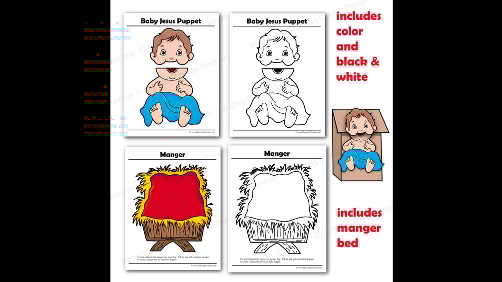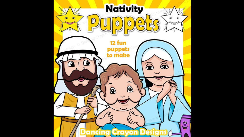 Christmas craftivity, printable Bible story puppets, Biblical puppetry, Christmas crafts and activities for kindergarten and first grade, 2nd grade, coloring